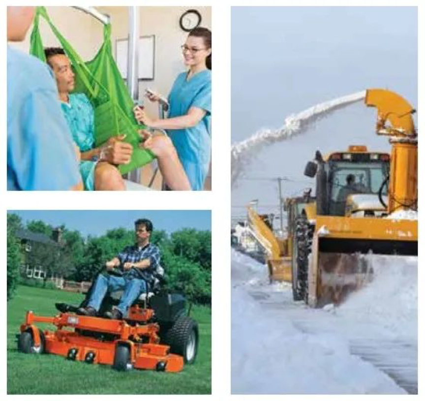 可以應用在農業噴霧器噴桿、掃雪機刀片、病人升降機以及割草機升降平臺等;